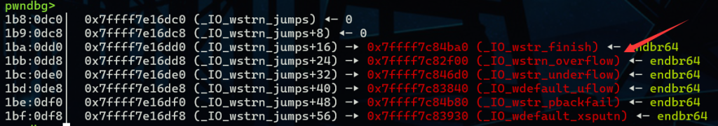 IO_jump_t是glibc中一个通用的结构体,用于实现文件流的多态性。它定义了一组函数指针,这些函数指针指向文件流的不同操作,如读、写、定位等等。IO_wstrn_jumps是IO_jump_t的一个实例,它用于实现宽字符流。它继承了IO_jump_t的所有函数指针,并定义了一些额外的函数指针,用于支持宽字符流的特殊操作。IO_jump_t结构体如下,vtable是它的一个实例。