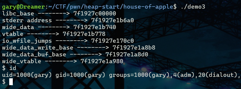 这样布置完之后,其余用\x00填充,我们的条件就满足了,那么我们的house of apple也就可以控制程序的执行流了