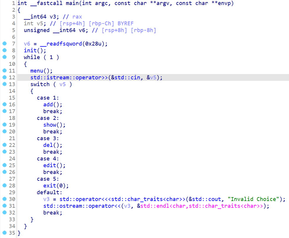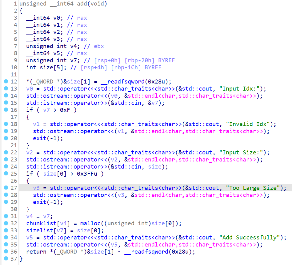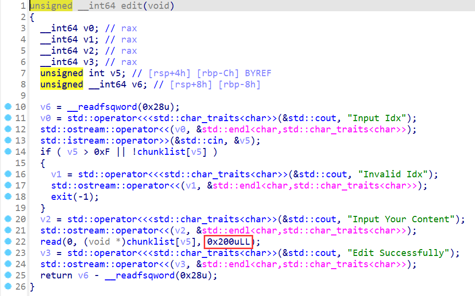 其余的函数均没有漏洞,聪明的小伙伴可能已经想到可以用tcache poison了,但是要注意这里的libc为2.35,没有那些hook了。这时我们的house of apple就可以发挥作用了,毕竟也是讲这个的