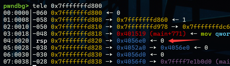 target就被修改为了0x4056e0这是一个随机的堆块地址,乍一看可能没什么用,但学到后面就有用了