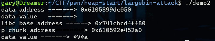 5. 此时触发large bin attack,攻击效果为向target_addr中写入chunk B的地址