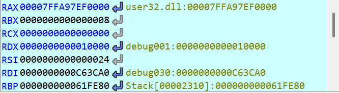 我们要关注的是整数的调用方式,可以看出第一个参数是rcx,第二个参数是rdx,一次类推
