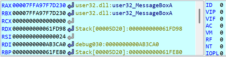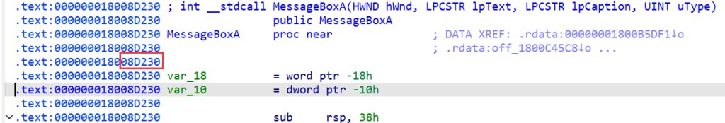 printf("MessageBoxA address: 0x%p\n", ProcAddr);